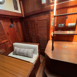 • Rig & Sails: New mast, in-boom furling system (2018), all new rigging (tuned June 2024), new sails, furling Genoa, club-footed furling staysail, electric wench for raising sail and furling main — all designed for safe, effortless sail handling.